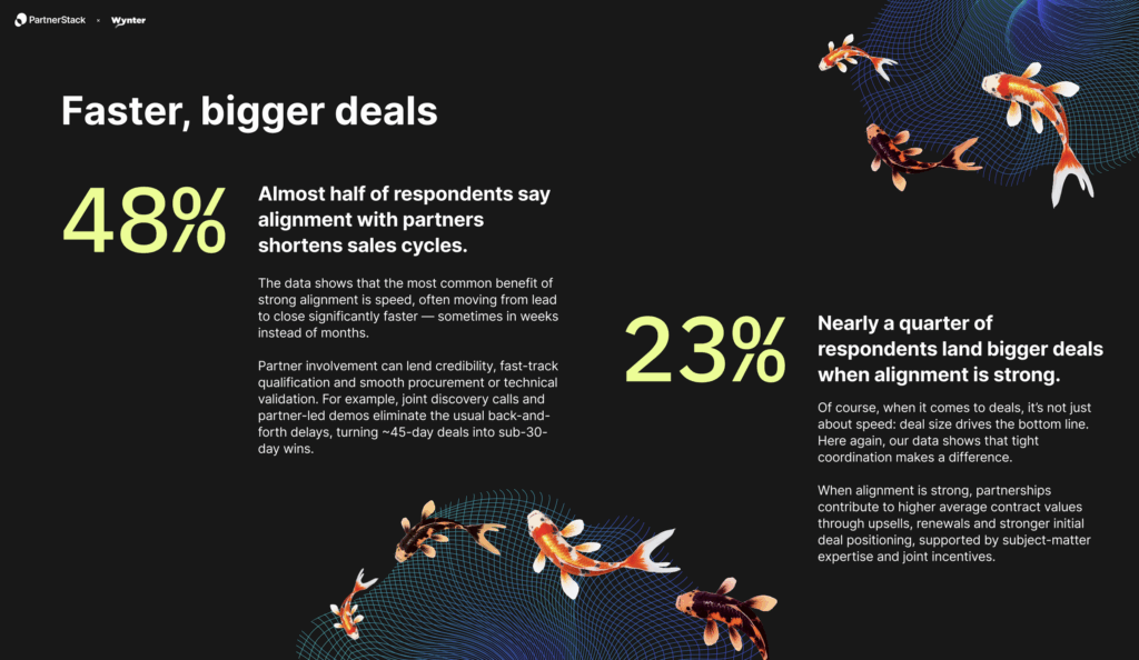 - 48% of respondents said alignment with partners shortens sales cycles — turning 45-day deals into 30-day wins.