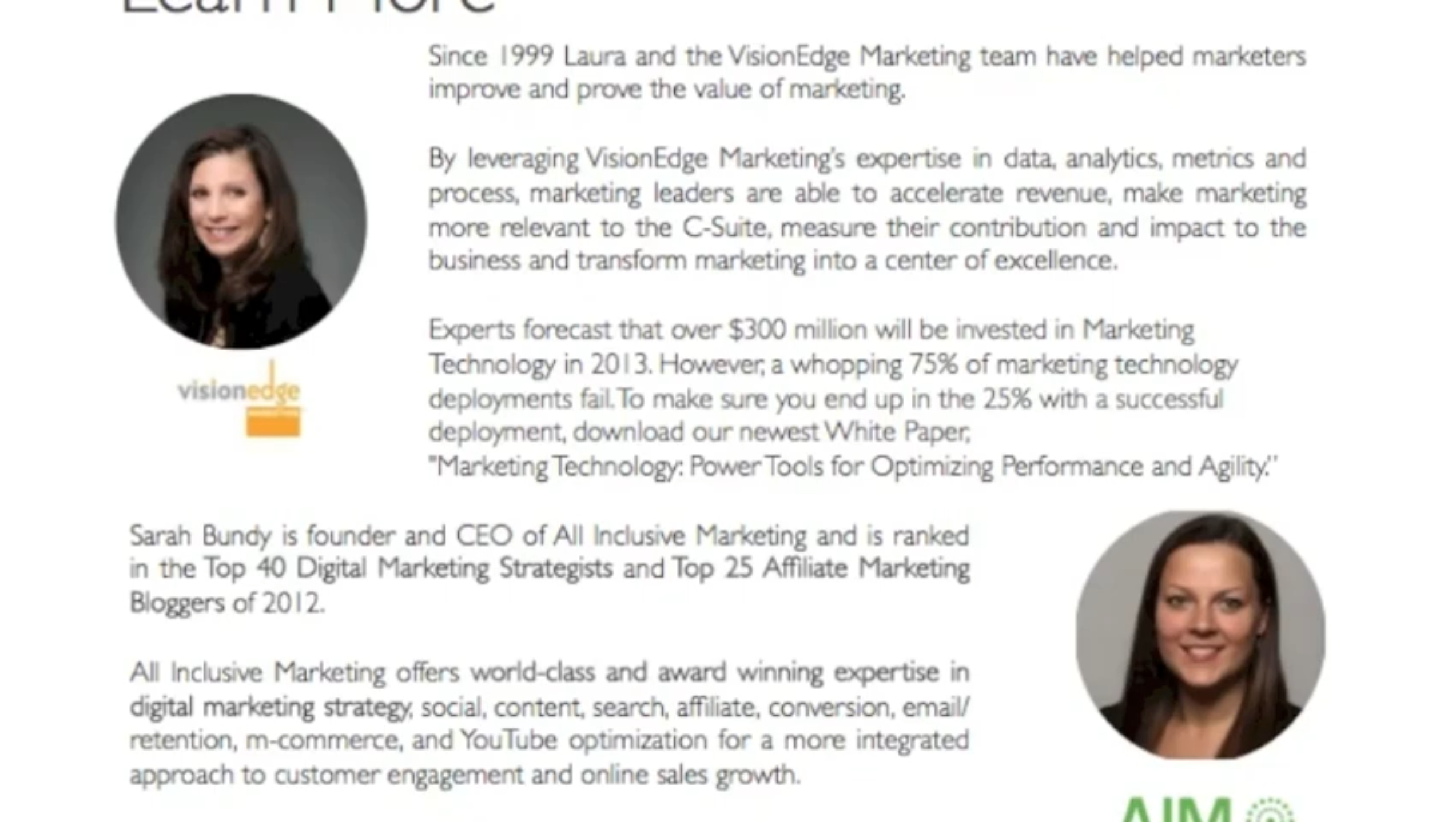 I recently did a webinar with consumer engagement expert, Laura Patterson, of Vision Edge Marketing, a company that improves and proves the value of marketing (online and offline) through data, analytics, metrics and marketing processes.